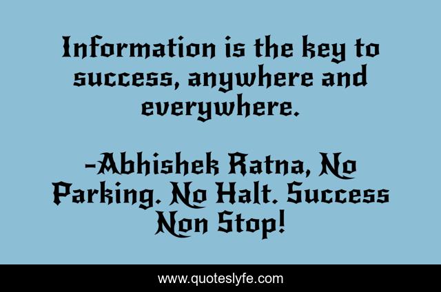 "Abhishek Ratna, No Parking. No Halt. Success Non Stop! Quotes." Quoteslyfe.com, 2025. Sun. 07 Dec. 2025. <https://www.quoteslyfe.com/quote/Information-is-the-key-to-success-anywhere-242123>.