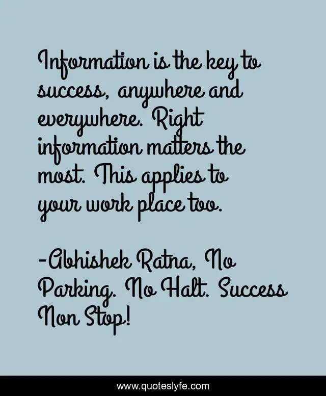 "Abhishek Ratna, No Parking. No Halt. Success Non Stop! Quotes." Quoteslyfe.com, 2025. Sun. 07 Dec. 2025. <https://www.quoteslyfe.com/quote/Information-is-the-key-to-success-anywhere-32655>.