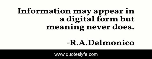 "R.A.Delmonico Quotes." Quoteslyfe.com, 2025. Fri. 05 Dec. 2025. <https://www.quoteslyfe.com/quote/Information-may-appear-in-a-digital-form-142296>.