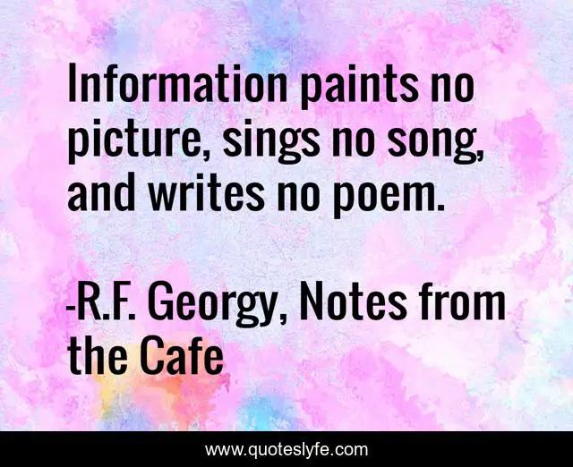 "R.F. Georgy, Notes from the Cafe Quotes." Quoteslyfe.com, 2025. Mon. 08 Dec. 2025. <https://www.quoteslyfe.com/quote/Information-paints-no-picture-sings-no-song-210113>.