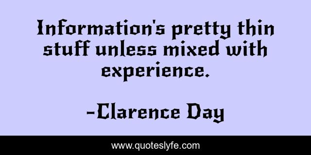 This page presents the quote "Information's pretty thin stuff unless mixed with experience.". Author of this quote is Clarence Day. This quote is about information, unless, pretty,.