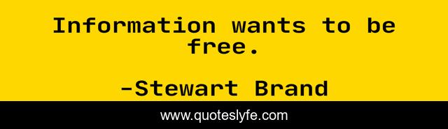 This page presents the quote "Information wants to be free.". Author of this quote is Stewart Brand. This quote is about information, data, free, research,.
