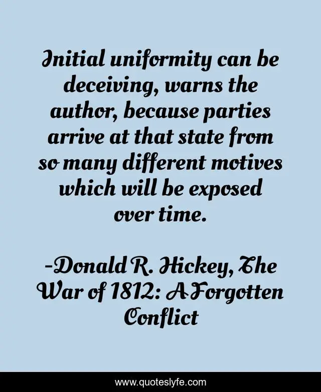 "Donald R. Hickey, The War of 1812: A Forgotten Conflict Quotes." Quoteslyfe.com, 2025. Fri. 05 Dec. 2025. <https://www.quoteslyfe.com/quote/Initial-uniformity-can-be-deceiving-warns-the-64814>.