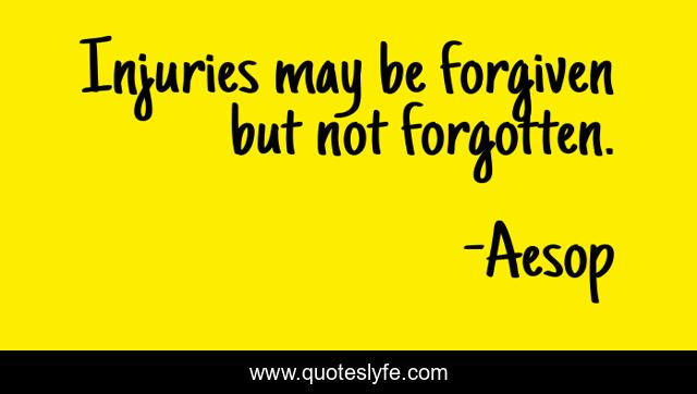 This page presents the quote "Injuries may be forgiven but not forgotten.". Author of this quote is Aesop. This quote is about calumny, insults,.