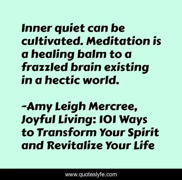 This page presents the quote "Inner quiet can be cultivated. Meditation is a healing balm to a frazzled brain existing in a hectic world.". Author of this quote is Amy Leigh Mercree, Joyful Living: 101 Ways to Transform Your Spirit and Revitalize Your Life. This quote is about quotes-de-la-vida, amy-leigh-mercree, quote-of-the-day, quotes-tumblr, inspirational, quote-about-life, enthusiasm, quotes-twitter, quote-of-the-week,.