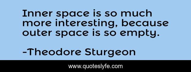 This page presents the quote "Inner space is so much more interesting, because outer space is so empty.". Author of this quote is Theodore Sturgeon. This quote is about outer space, interesting,.