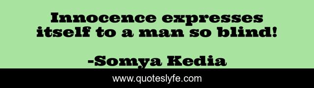 This page presents the quote "Innocence expresses itself to a man so blind!". Author of this quote is Somya Kedia. .