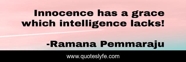 This page presents the quote "Innocence has a grace which intelligence lacks!". Author of this quote is Ramana Pemmaraju. This quote is about intelligence, cunning-and-attitude, innocence,.