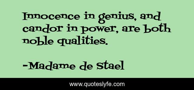 This page presents the quote "Innocence in genius, and candor in power, are both noble qualities.". Author of this quote is Madame de Stael. This quote is about genius, qualities, innocence,.