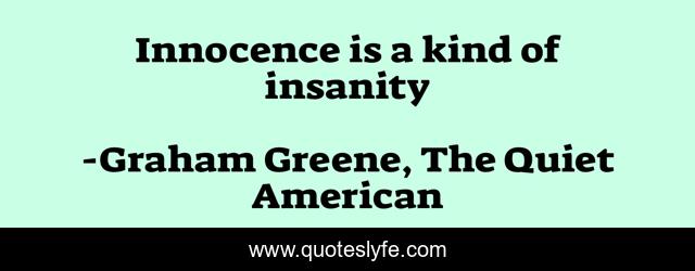 This page presents the quote "Innocence is a kind of insanity". Author of this quote is Graham Greene, The Quiet American. This quote is about innocence, innocent, insanity,.