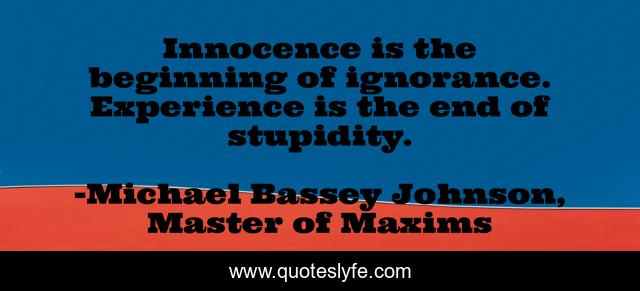 "Michael Bassey Johnson, Master of Maxims Quotes." Quoteslyfe.com, 2025. Mon. 08 Dec. 2025. <https://www.quoteslyfe.com/quote/Innocence-is-the-beginning-of-ignorance-Experience-31590>.