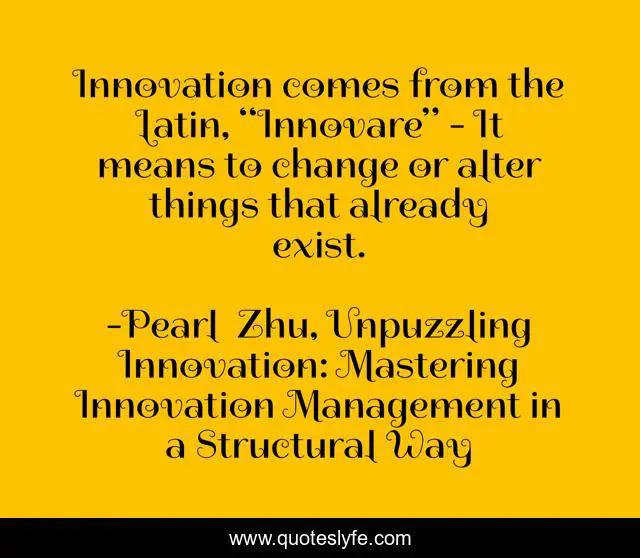 "Pearl Zhu, Unpuzzling Innovation: Mastering Innovation Management in a Structural Way Quotes." Quoteslyfe.com, 2025. Fri. 05 Dec. 2025. <https://www.quoteslyfe.com/quote/Innovation-comes-from-the-Latin-Innovare-It-108008>.