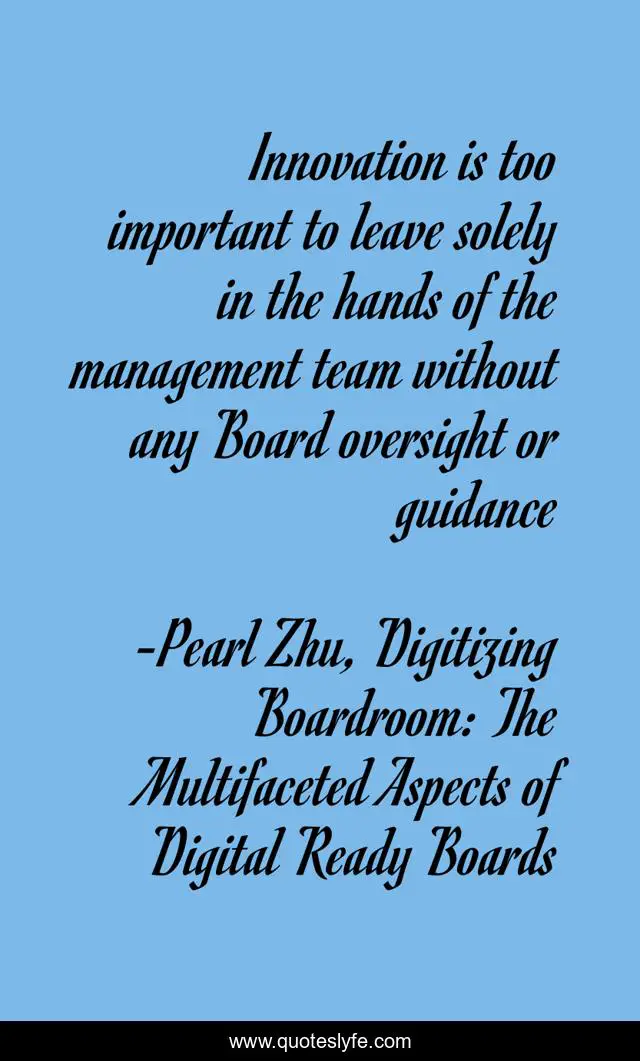 This page presents the quote "Innovation is too important to leave solely in the hands of the management team without any Board oversight or guidance". Author of this quote is Pearl Zhu, Digitizing Boardroom: The Multifaceted Aspects of Digital Ready Boards. This quote is about board-of-directors, boards, innovation,.