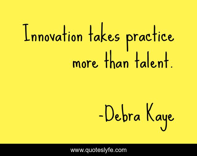 This page presents the quote "Innovation takes practice more than talent.". Author of this quote is Debra Kaye. This quote is about inspirational-attitude, creative-thinking, business-advice,.