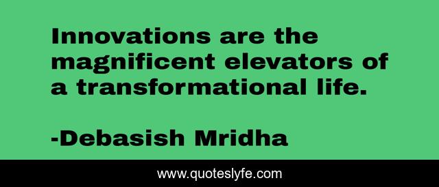 This page presents the quote "Innovations are the magnificent elevators of a transformational life.". Author of this quote is Debasish Mridha. This quote is about change-your-life, philosophy, debasish-mridha, innovations, quotes, debasish-mridha-md, inspirational, innovation, enthusiasm,.