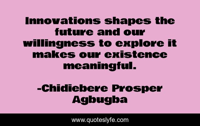 "Chidiebere Prosper Agbugba Quotes." Quoteslyfe.com, 2025. Fri. 05 Dec. 2025. <https://www.quoteslyfe.com/quote/Innovations-shapes-the-future-and-our-willingness-102573>.