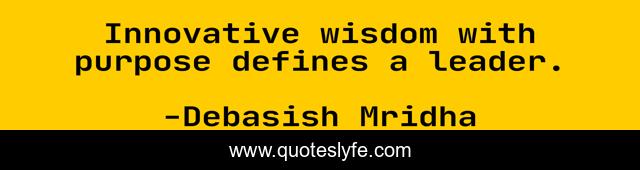 This page presents the quote "Innovative wisdom with purpose defines a leader.". Author of this quote is Debasish Mridha. This quote is about philosophy, innovative-wisdom, mridha, debasish, debasish-mridha, leadership, purpose-defines-a-leader, leader,.