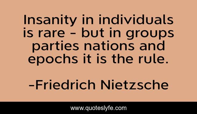 "Friedrich Nietzsche Quotes." Quoteslyfe.com, 2025. Sat. 06 Dec. 2025. <https://www.quoteslyfe.com/quote/Insanity-in-individuals-is-rare-but-in-262823>.