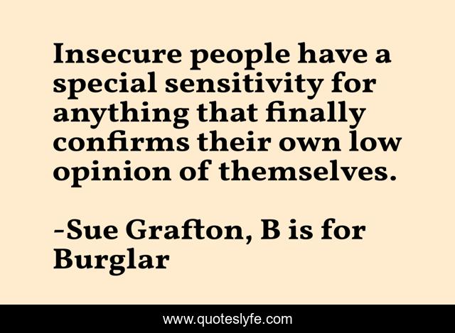 "Sue Grafton, B is for Burglar Quotes." Quoteslyfe.com, 2025. Fri. 05 Dec. 2025. <https://www.quoteslyfe.com/quote/Insecure-people-have-a-special-sensitivity-for-51332>.