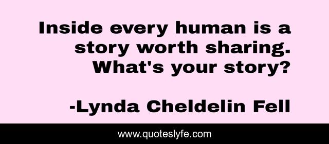 This page presents the quote "Inside every human is a story worth sharing. What's your story?". Author of this quote is Lynda Cheldelin Fell. This quote is about enthusiasm, story, inspirational,.