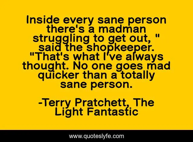 "Terry Pratchett, The Light Fantastic Quotes." Quoteslyfe.com, 2025. Fri. 05 Dec. 2025. <https://www.quoteslyfe.com/quote/Inside-every-sane-person-there-s-a-70972>.