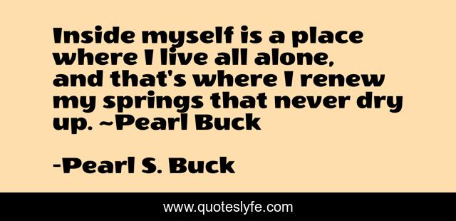 This page presents the quote "Inside myself is a place where I live all alone, and that's where I renew my springs that never dry up. ~Pearl Buck". Author of this quote is Pearl S. Buck. .