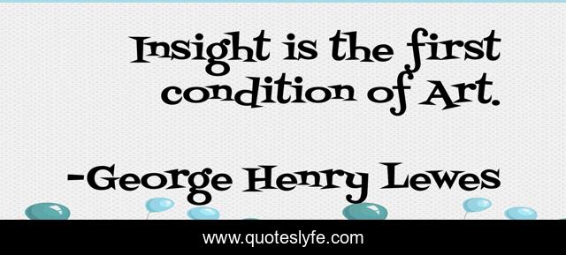 This page presents the quote "Insight is the first condition of Art.". Author of this quote is George Henry Lewes. This quote is about insight, condition, first,.
