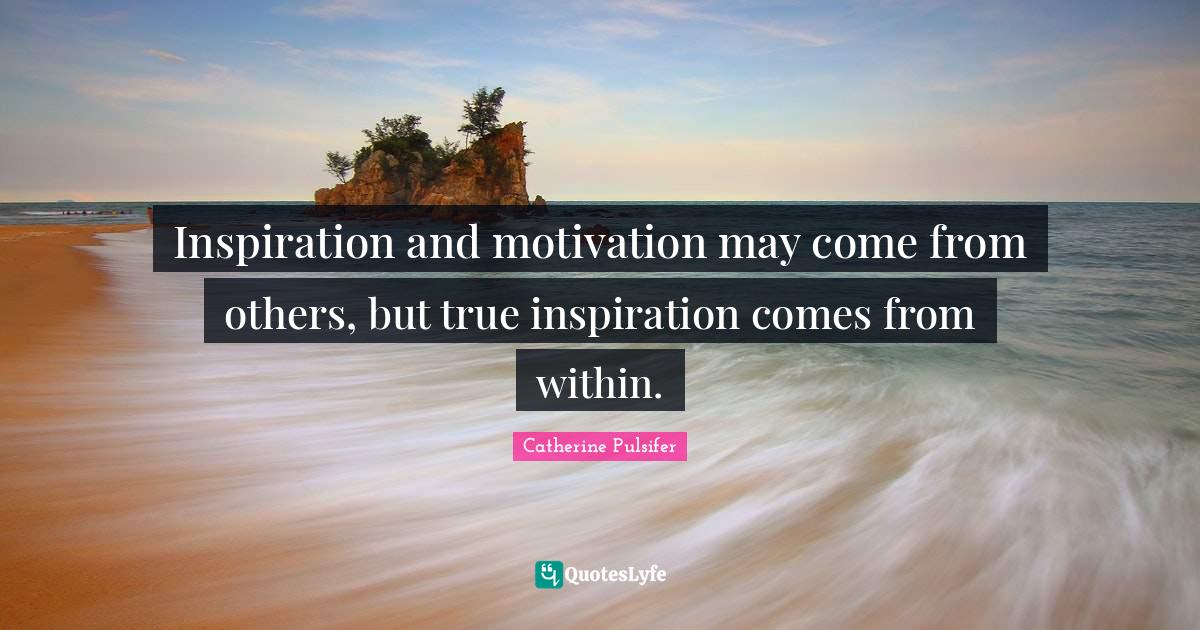 This page presents the quote "Inspiration and motivation may come from others, but true inspiration comes from within.". Author of this quote is Catherine Pulsifer. This quote is about inspiring others,.