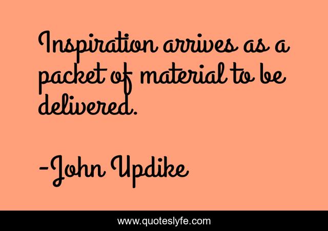 This page presents the quote "Inspiration arrives as a packet of material to be delivered.". Author of this quote is John Updike. This quote is about material, inspiration,.