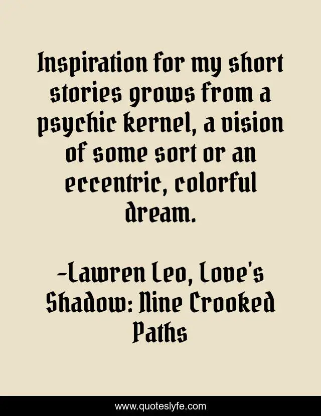 "Lawren Leo, Love's Shadow: Nine Crooked Paths Quotes." Quoteslyfe.com, 2025. Sat. 06 Dec. 2025. <https://www.quoteslyfe.com/quote/Inspiration-for-my-short-stories-grows-from-131150>.