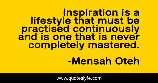 "Mensah Oteh Quotes." Quoteslyfe.com, 2025. Fri. 05 Dec. 2025. <https://www.quoteslyfe.com/quote/Inspiration-is-a-lifestyle-that-must-be-49058>.