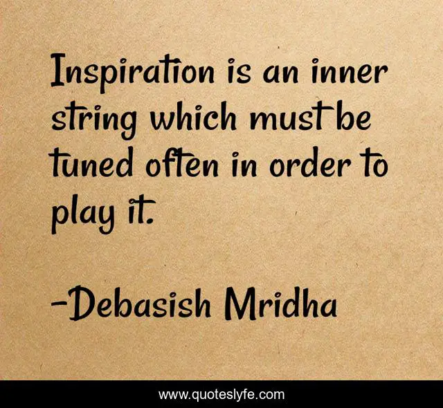 This page presents the quote "Inspiration is an inner string which must be tuned often in order to play it.". Author of this quote is Debasish Mridha. This quote is about how-to-be-inspired, philosophy, debasish-mridha, quotes, debasish-mridha-md, inspirational, improving-inspiration, enthusiasm, inspiration,.
