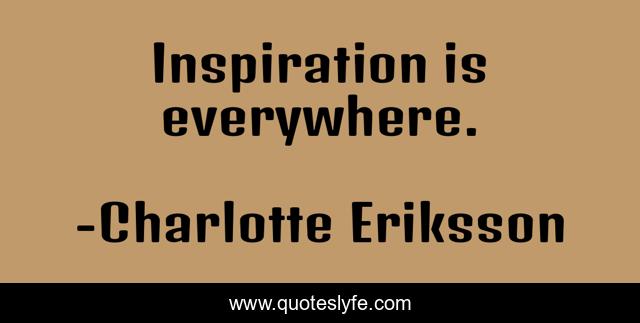 "Charlotte Eriksson Quotes." Quoteslyfe.com, 2025. Sun. 07 Dec. 2025. <https://www.quoteslyfe.com/quote/Inspiration-is-everywhere-108422>.