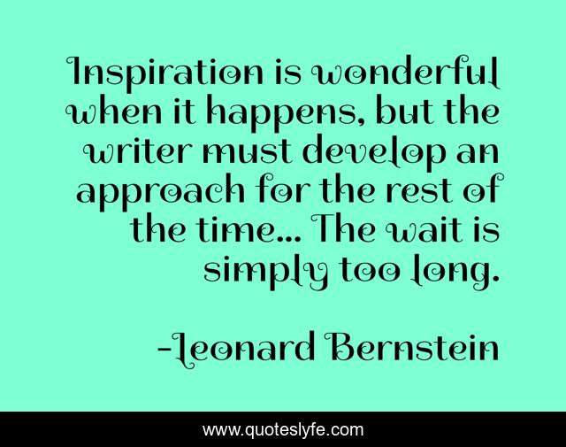 This page presents the quote "Inspiration is wonderful when it happens, but the writer must develop an approach for the rest of the time... The wait is simply too long.". Author of this quote is Leonard Bernstein. This quote is about literature, creativity, on-writing,.