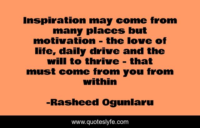 "Rasheed Ogunlaru Quotes." Quoteslyfe.com, 2025. Mon. 08 Dec. 2025. <https://www.quoteslyfe.com/quote/Inspiration-may-come-from-many-places-but-15493>.
