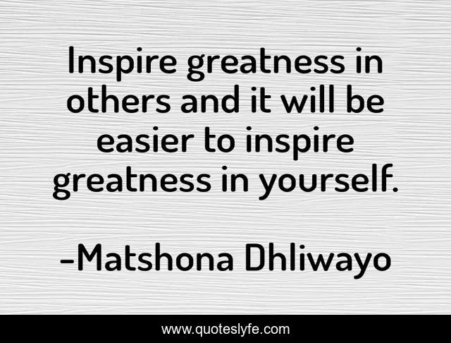 "Matshona Dhliwayo Quotes." Quoteslyfe.com, 2025. Fri. 05 Dec. 2025. <https://www.quoteslyfe.com/quote/Inspire-greatness-in-others-and-it-will-189952>.