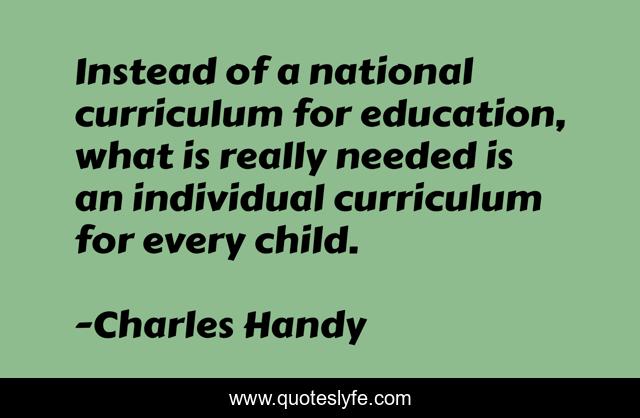 This page presents the quote "Instead of a national curriculum for education, what is really needed is an individual curriculum for every child.". Author of this quote is Charles Handy. This quote is about curriculum, child,.