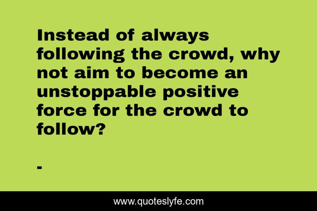 This page presents the quote "Instead of always following the crowd, why not aim to become an unstoppable positive force for the crowd to follow?". Author of this quote is . This quote is about edmond-mbiaka, following-the-crowd, aim-to-become-a-positive-force, stop-following-the-crowd, unstoppable-positive-force,.