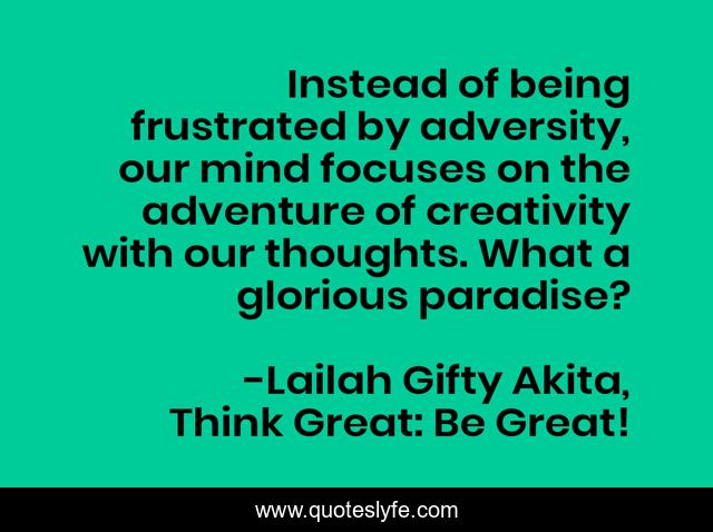 "Lailah Gifty Akita, Think Great: Be Great! Quotes." Quoteslyfe.com, 2025. Sat. 06 Dec. 2025. <https://www.quoteslyfe.com/quote/Instead-of-being-frustrated-by-adversity-our-94897>.