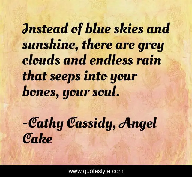 "Cathy Cassidy, Angel Cake Quotes." Quoteslyfe.com, 2025. Mon. 08 Dec. 2025. <https://www.quoteslyfe.com/quote/Instead-of-blue-skies-and-sunshine-there-63460>.