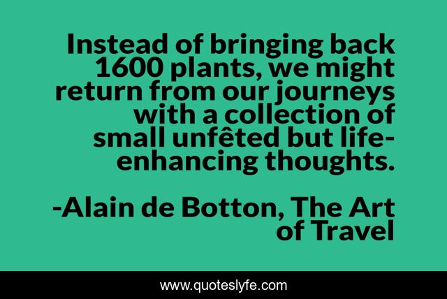 "Alain de Botton, The Art of Travel Quotes." Quoteslyfe.com, 2025. Mon. 08 Dec. 2025. <https://www.quoteslyfe.com/quote/Instead-of-bringing-back-1600-plants-we-136936>.
