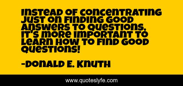 This page presents the quote "Instead of concentrating just on finding good answers to questions, it's more important to learn how to find good questions!". Author of this quote is Donald E. Knuth. .