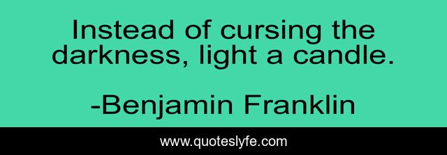 "Benjamin Franklin Quotes." Quoteslyfe.com, 2025. Mon. 08 Dec. 2025. <https://www.quoteslyfe.com/quote/Instead-of-cursing-the-darkness-light-a-4079>.