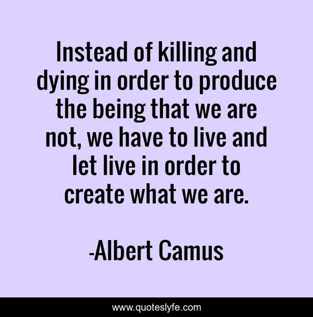 "Albert Camus Quotes." Quoteslyfe.com, 2025. Sat. 06 Dec. 2025. <https://www.quoteslyfe.com/quote/Instead-of-killing-and-dying-in-order-105482>.