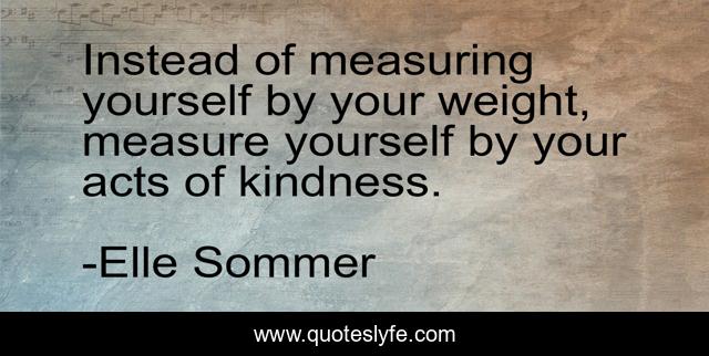 This page presents the quote "Instead of measuring yourself by your weight, measure yourself by your acts of kindness.". Author of this quote is Elle Sommer. This quote is about kindness, weight,.