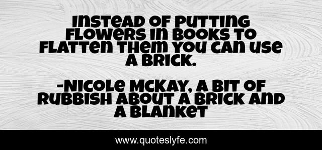 "Nicole McKay, A bit of rubbish about a Brick and a Blanket Quotes." Quoteslyfe.com, 2025. Sat. 06 Dec. 2025. <https://www.quoteslyfe.com/quote/Instead-of-putting-flowers-in-books-to-246886>.