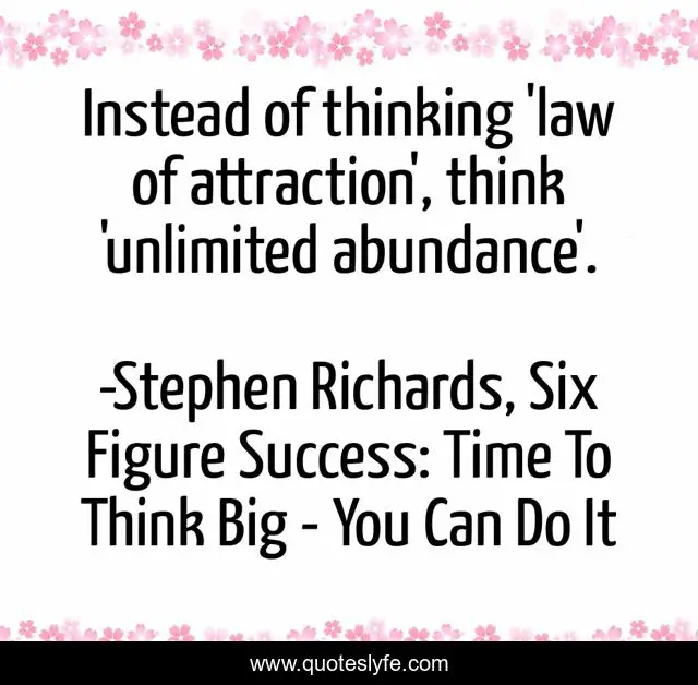 "Stephen Richards, Six Figure Success: Time To Think Big - You Can Do It Quotes." Quoteslyfe.com, 2025. Mon. 08 Dec. 2025. <https://www.quoteslyfe.com/quote/Instead-of-thinking-law-of-attraction-think-78090>.