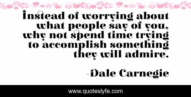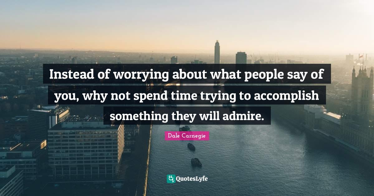 This page presents the quote "Instead of worrying about what people say of you, why not spend time trying to accomplish something they will admire.". Author of this quote is Dale Carnegie. This quote is about why, people,.