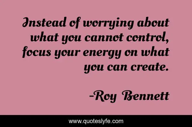 This page presents the quote "Instead of worrying about what you cannot control, focus your energy on what you can create.". Author of this quote is Roy Bennett. This quote is about authentic-self, life, being-positive, energy, creation, authenticity, confidence, optimism, focus,.