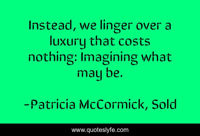 This page presents the quote "Instead, we linger over a luxury that costs nothing: Imagining what may be.". Author of this quote is Patricia McCormick, Sold. .
